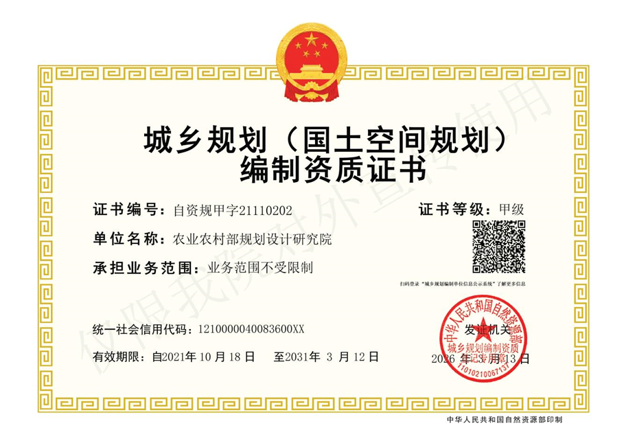 城鄉規劃編制甲級資質證書