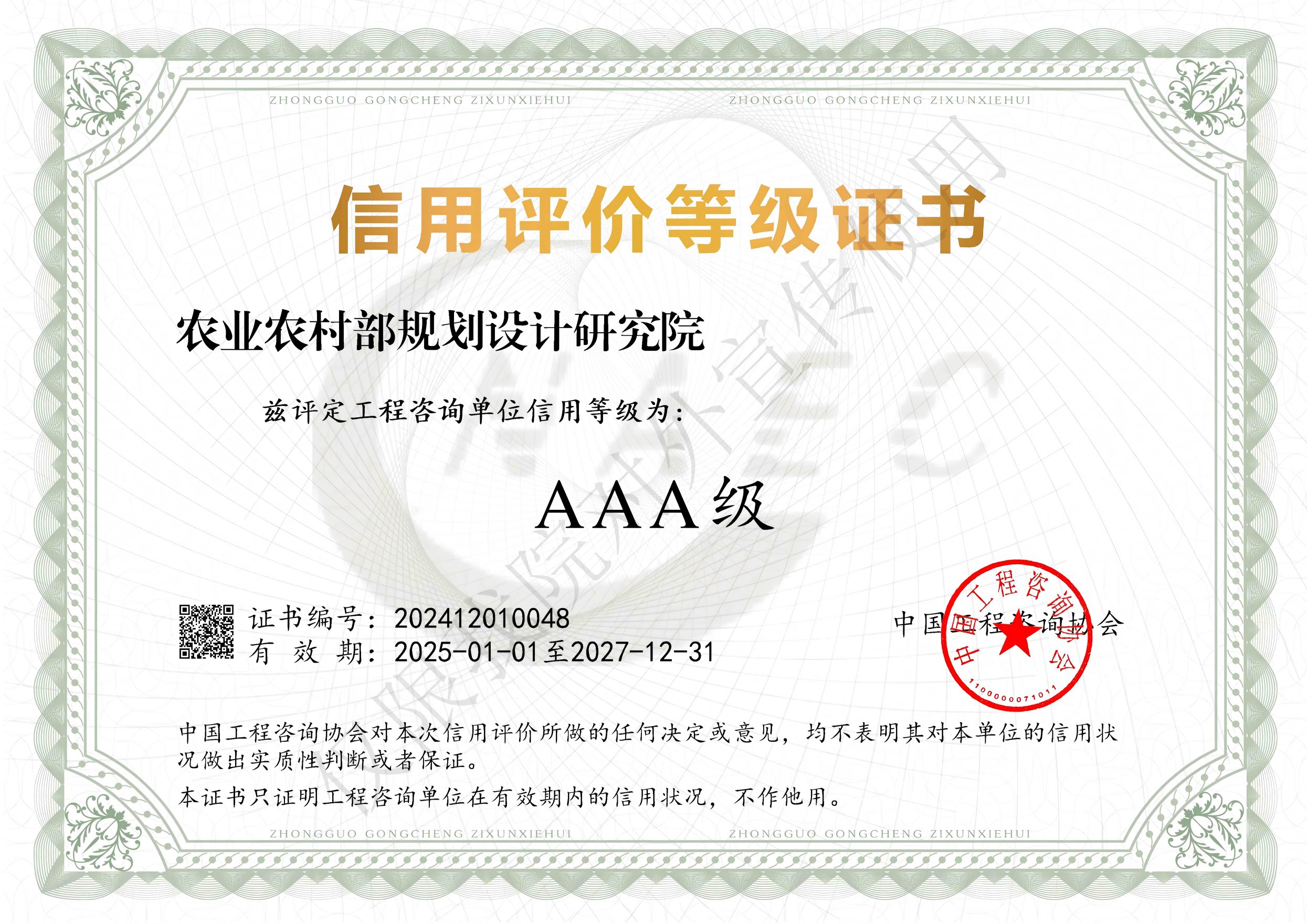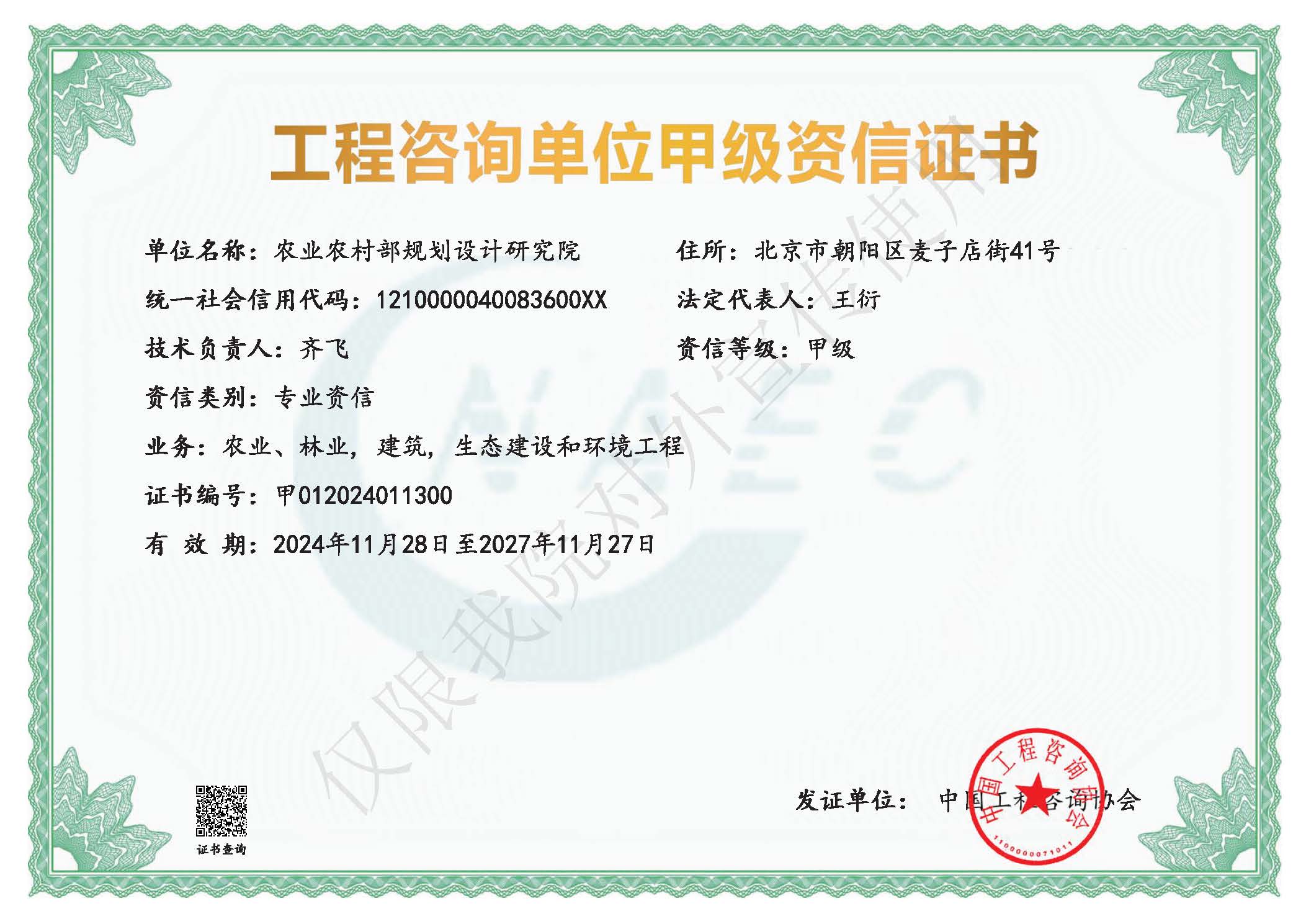 工程咨詢甲級咨信證書