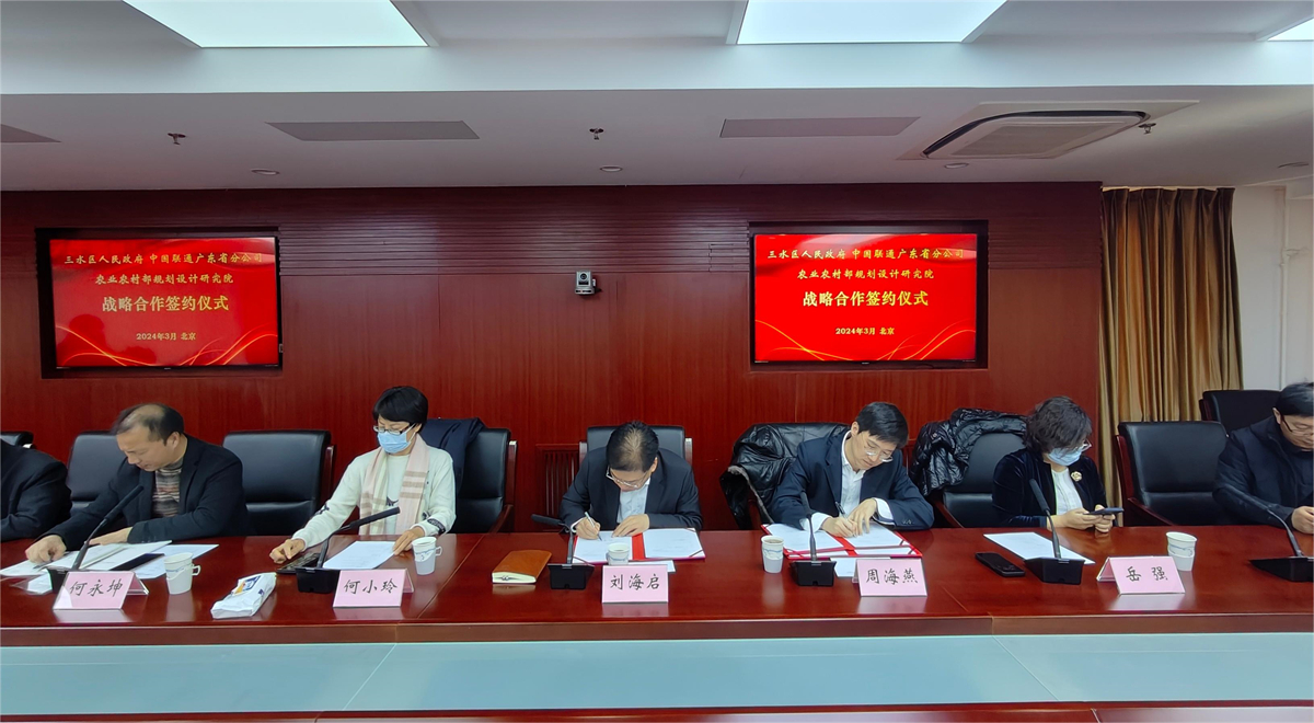 我院與佛山市三水區、廣東省聯通簽署三方戰略合作協議
