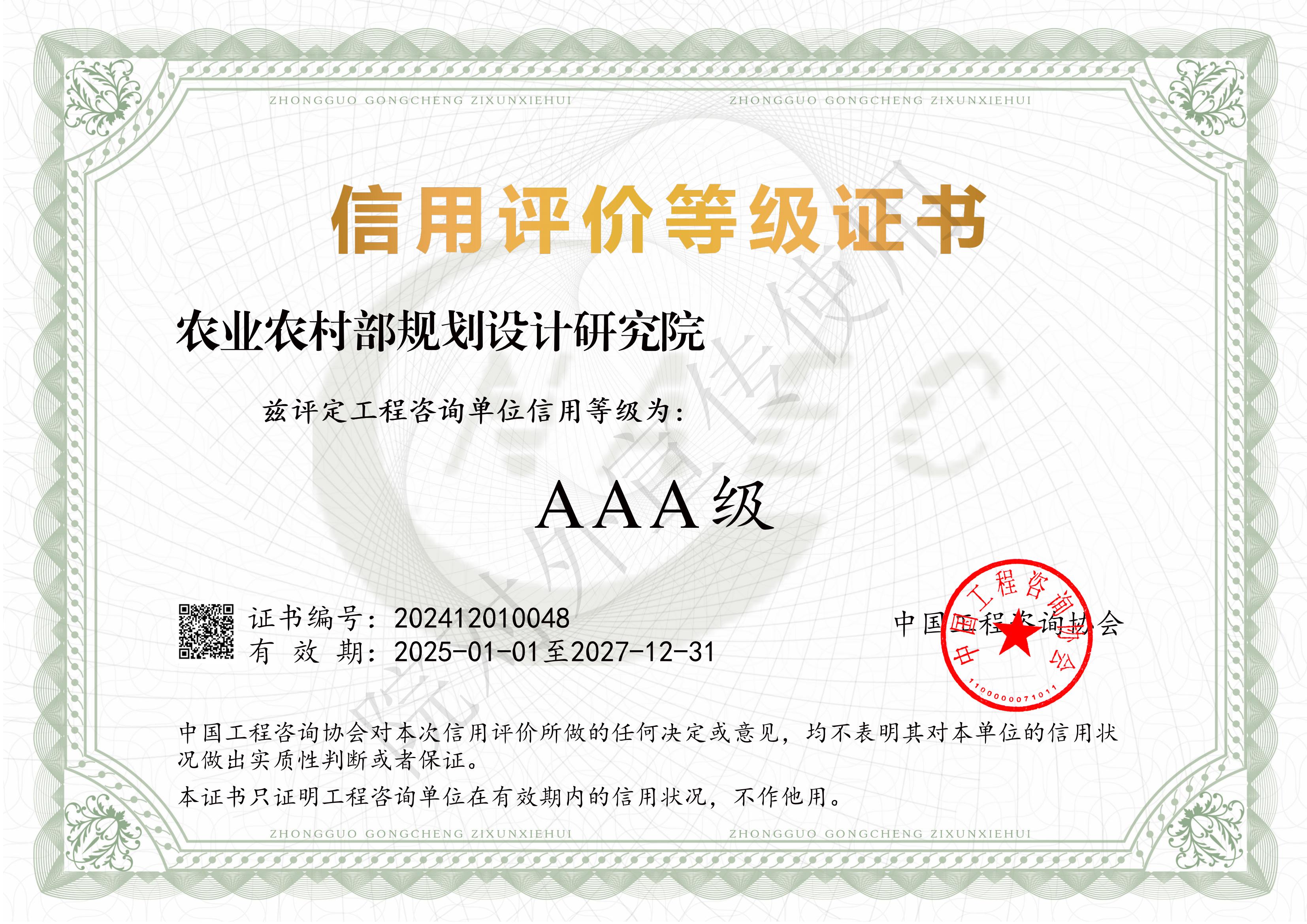 2025年1月10日,中國工程咨詢協會發布公告,我院獲得工程咨詢單位信用評價AAA級。按照中國工程咨詢協會《工程咨詢單位信用評價管理辦法》,通過申報、評審、公示等程序,對單位誠信建設和信用管理五個方面23項指標進行綜合考核,我院成功獲得工程咨詢單位信用評價AAA級,是對我院咨詢服務綜合能力的一次全面體檢,進一步提升了我院在行業中品牌影響力。
