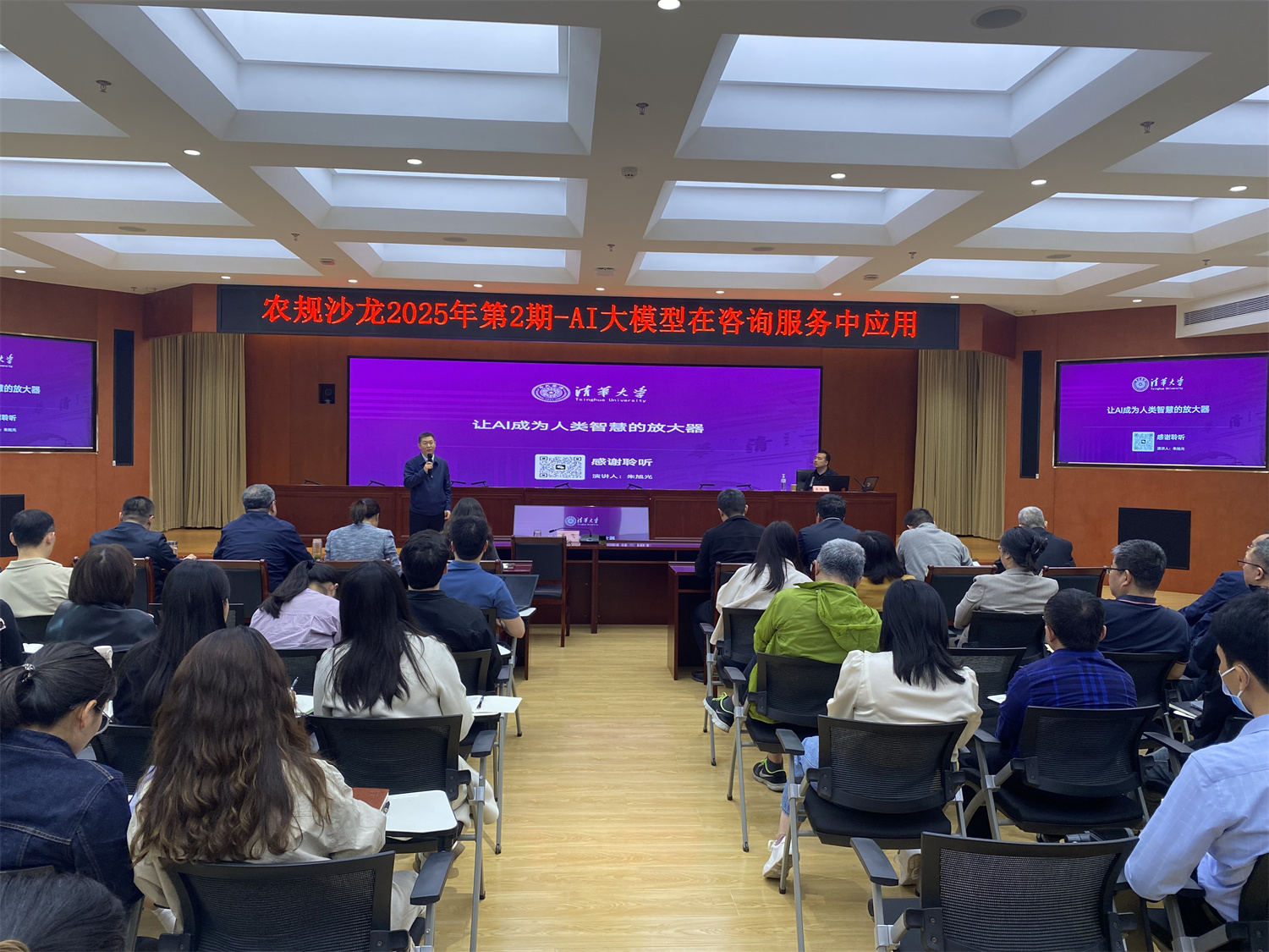 5月7日上午,我院舉辦了2025年第2期農規沙龍活動,以“AI 大模型在咨詢服務中應用”為主題,邀請深圳清華大學研究院多模態人工智能數據工程研發中心主任朱旭光作輔導講座。齊飛總工程師主持。有關部門負責人和業務骨干共計70余人參加。