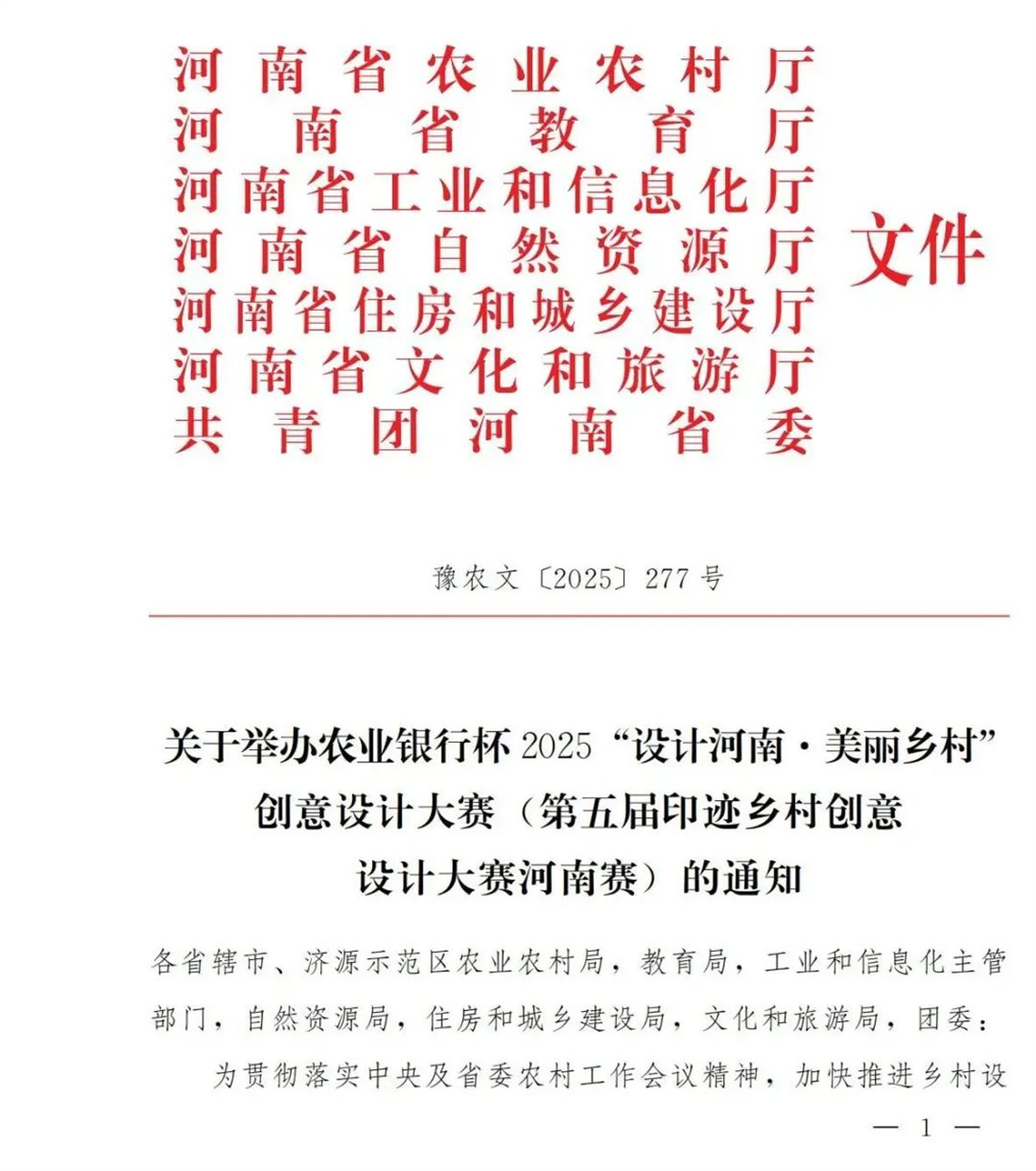 關于舉辦農業銀行杯2025“設計河南 美麗鄉村”創意設計大賽(第五屆印跡鄉村創意設計大賽河南賽)的通知