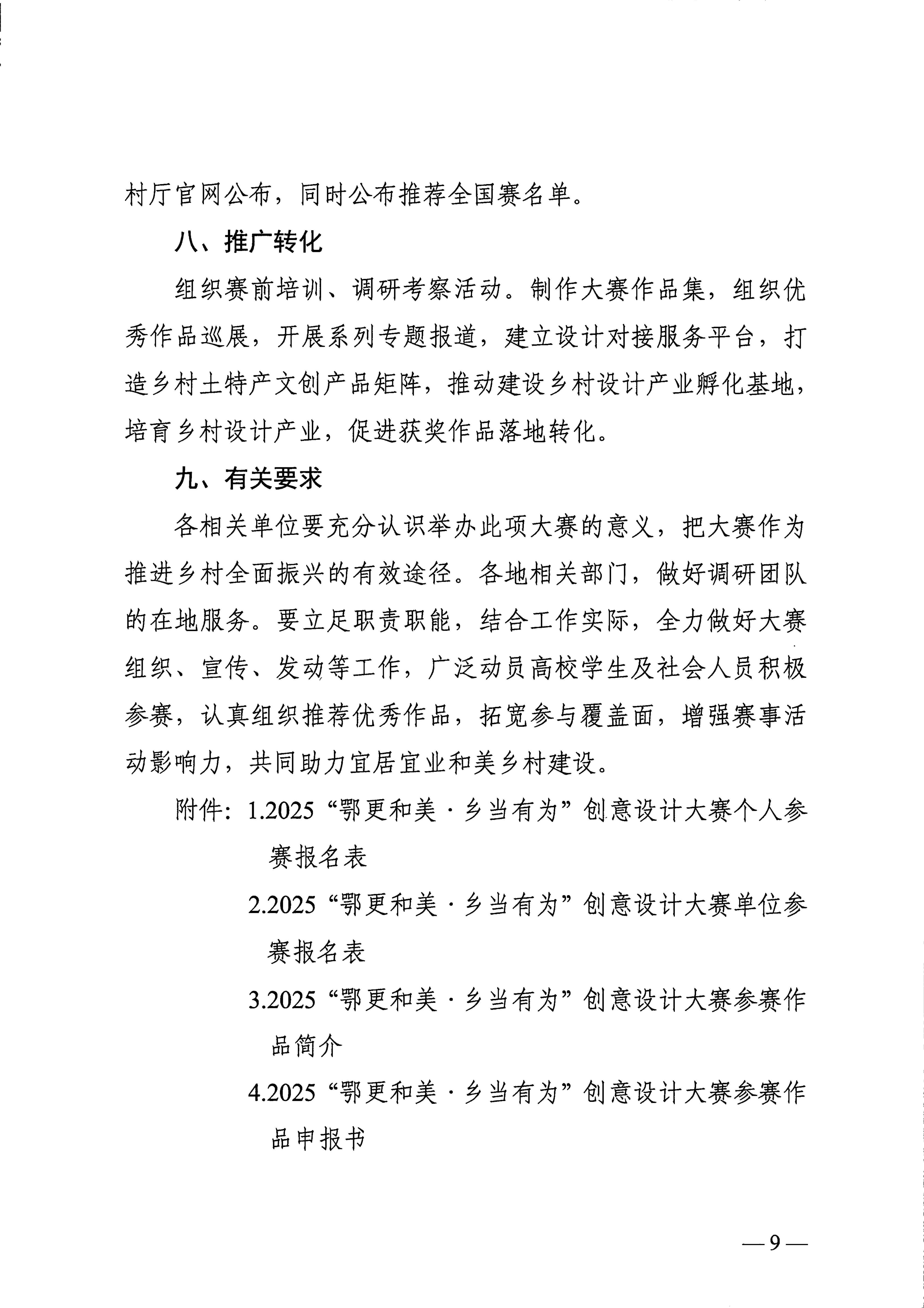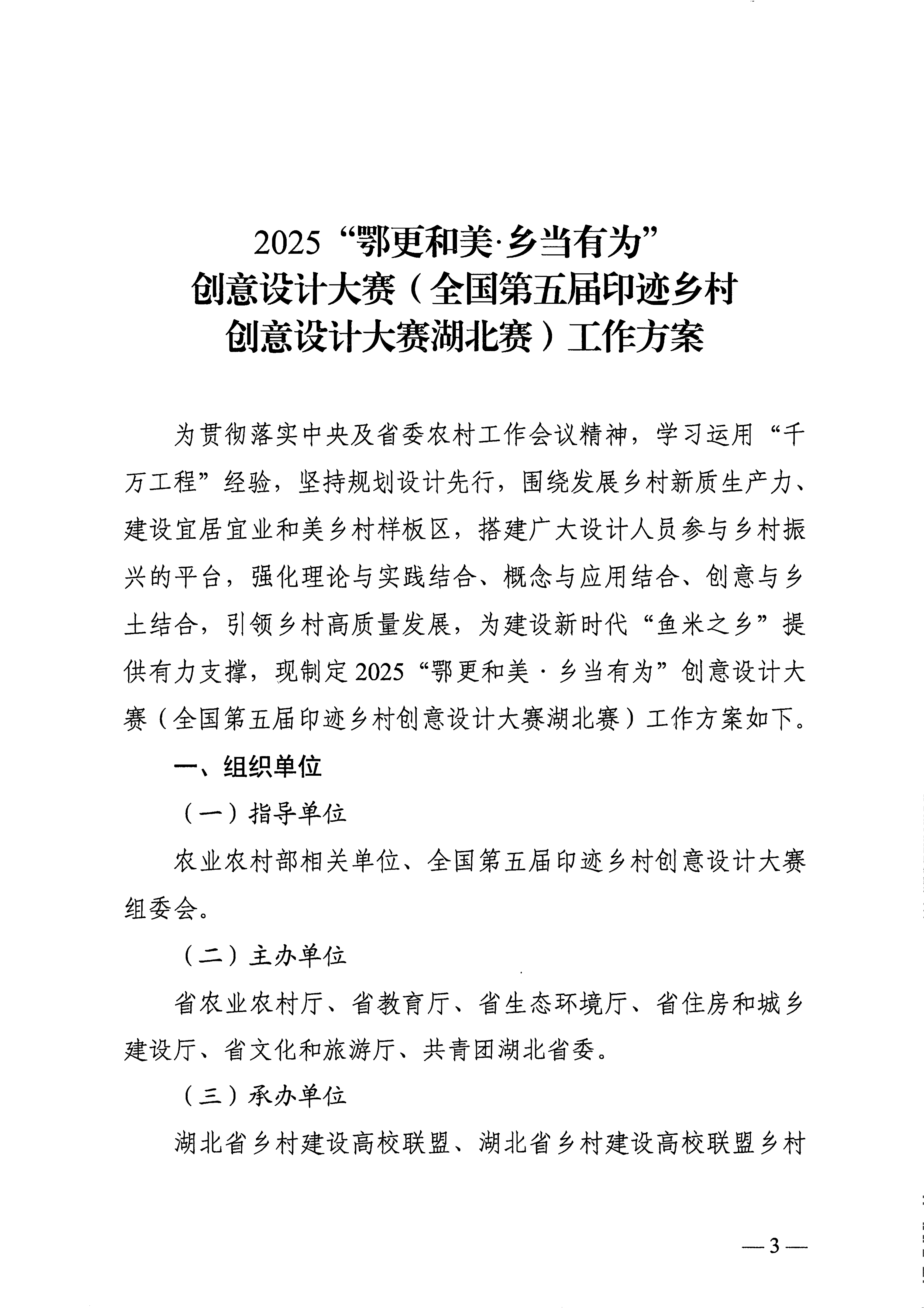關(guān)于舉辦2025“鄂更和美·鄉(xiāng)當(dāng)有為” 創(chuàng)意設(shè)計(jì)大賽(全國第五屆印跡鄉(xiāng)村創(chuàng)意 設(shè)計(jì)大賽湖北賽)的通知
