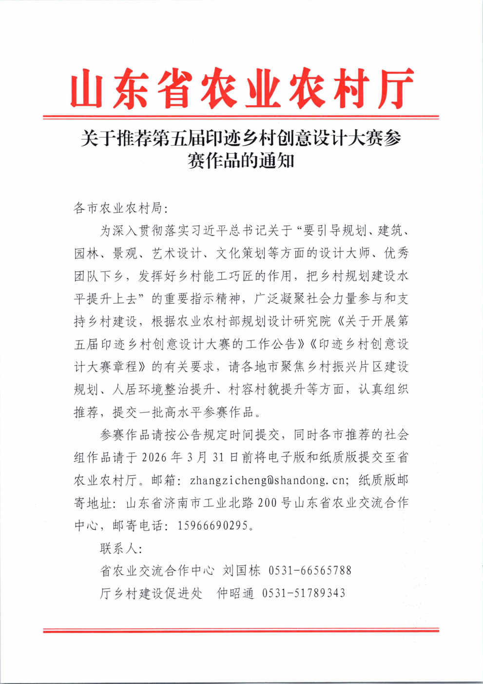 山東省農業農村廳關于推薦第五屆印跡鄉村創意設計大賽參賽作品的通知